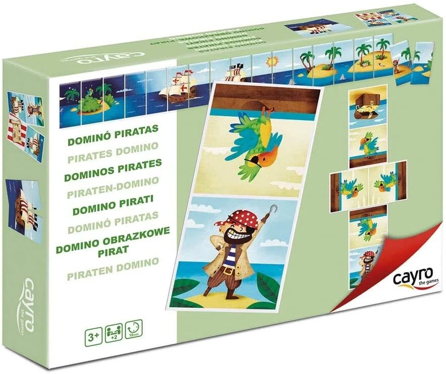 This game allows children who do not know how to count to play dominoes as all they have to do is match the drawings. The set doubles as a landscape puzzle! With the characters presented in the puzzle, kids can invent stories about the fiercest of pirates and their adventures across the open seas. Once kids finish playing with the set they can simply store it all in the lined cardboard box.