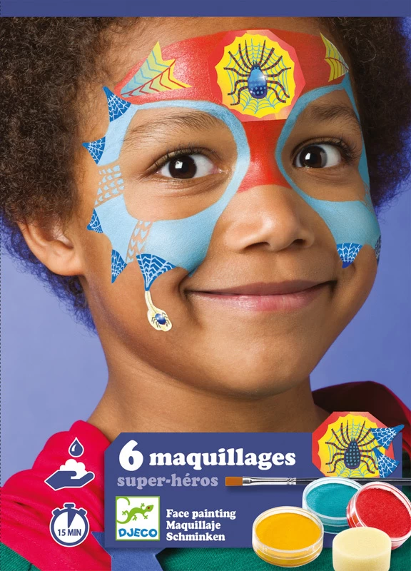 Having a party for the kids? Kids love having their face painted and you can now create your own face paint designs with a Super Heroes Body Art Face Painting Kit by Djeco. This easy to use face painting set includes everything you need to create 6 Superhero themed face painting designs, including 3 face paint colours, stencils and stick on embellishments for those final touches. Â