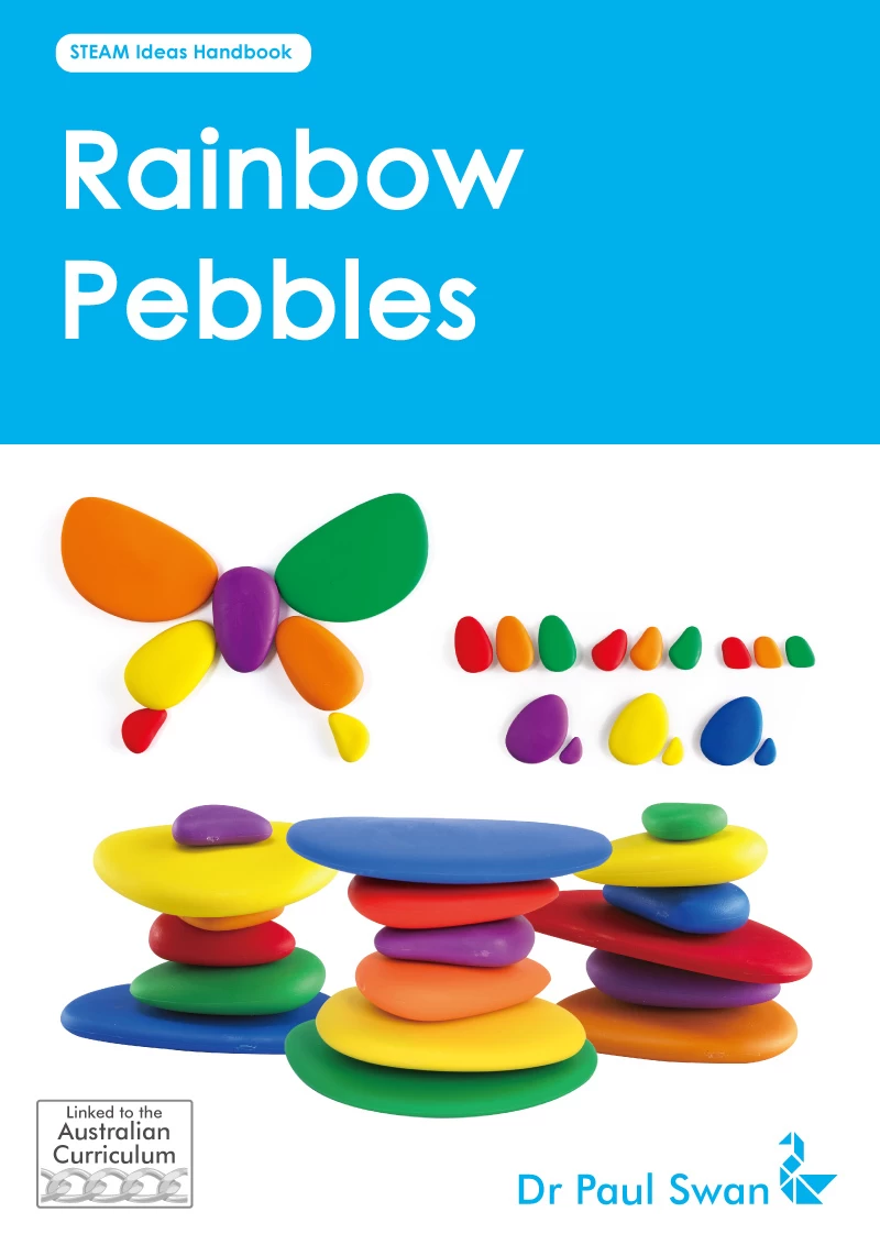 The perfect activity book to accompany your Rainbow Pebbles sets. Rainbow Pebbles are a tactile manipulative that may support the development of Science, Technology, Engineering, Art and Mathematics. The Rainbow Pebbles come in 6 different sizes and 6 different colours. With the Rainbow Pebbles STEM ideas handbook to assist both parents and teachers, kids will learn the foundations of patterns and begin to recognise how patterns are formed. They can then extend the activity to the formation of their own patterns and create a pattern forming game for others.