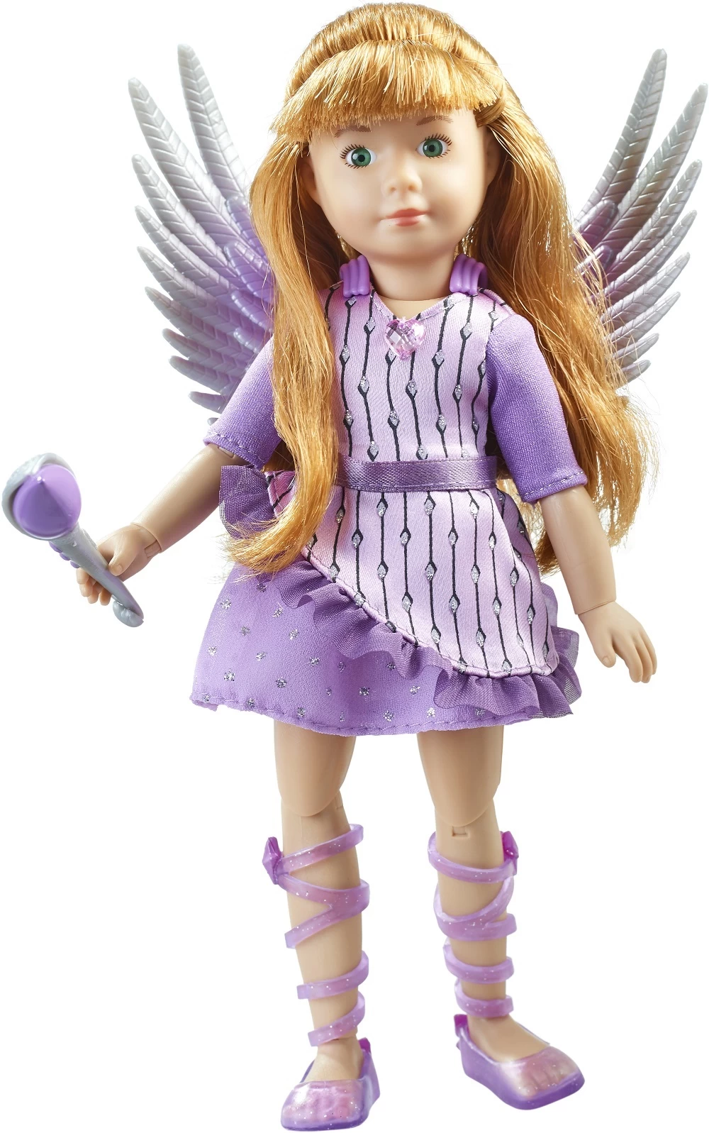 Kruselings Chloe Doll Deluxe Set is an exciting set featuring one Kruseling Chloe doll and an array of accessories and outfits to suit her different activities. With red hair and emerald green eyes, Chloe sparkles inside and out as she tries to see the best in everyone and everything. She wears a purple sparkling magic dress, shoes, wings and her magic paint brush. She is inspired by the art in her ‘sleepy little home town’ of London, that encourages her to never stop creating and pushing boundaries. Also in this set, is Chloe’s workaday outfit which includes a dotted dress, a parka, boots and a pink bag and her very own hair brush.