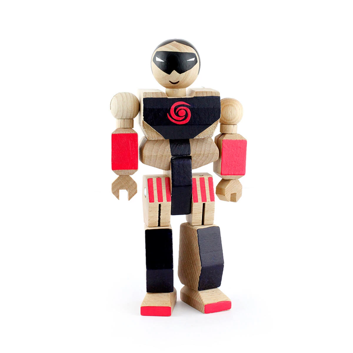 Wooden articulated action figure.