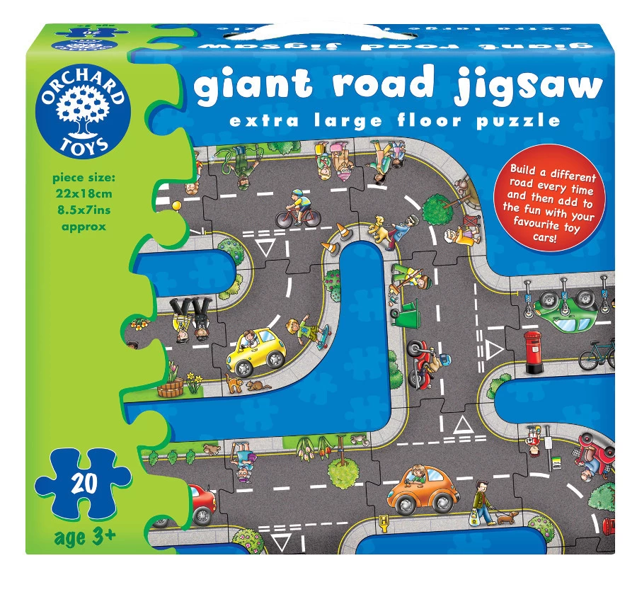 Orchard Toys with their ethos of “learning made fun” are renown the world over for their educational games, toys and jigsaw puzzles for kids. This Orchard Toys Giant Road Jigsaw Puzzle – 20 pce is no exception; simple and easy for younger children but educational, engaging and loads of fun. This fabulous kids jigsaw puzzle will entertain children for hours both creating the puzzle in loads of different designs then adding to the fun with their favourite toys & cars. This giant jigsaw puzzle is the perfect kids activity for a play group, for a long weekend or for a fun family games night.