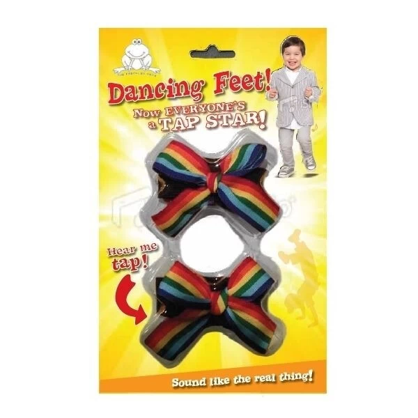 Children simply love this toy. It recreates realistic tap shoe sounds that encourage them to get up and dance. Safe and easy to use. Slip the bow over any size shoe using the elastic band. A hidden clicking mechanism inside the band produces a delightful tap shoe sound when stepped on.