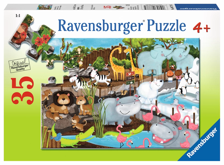 This brightly coloured Ravensburger Day at the Zoo 35pc Jigsaw Puzzle is a fun, early learning activity for young children. Ravenburger Jigsaw Puzzles are excellent for childrens cognitive development, also teaching young minds to recognize and sort shapes while having fun. Children can enjoy this jigsaw puzzle over and over again.
