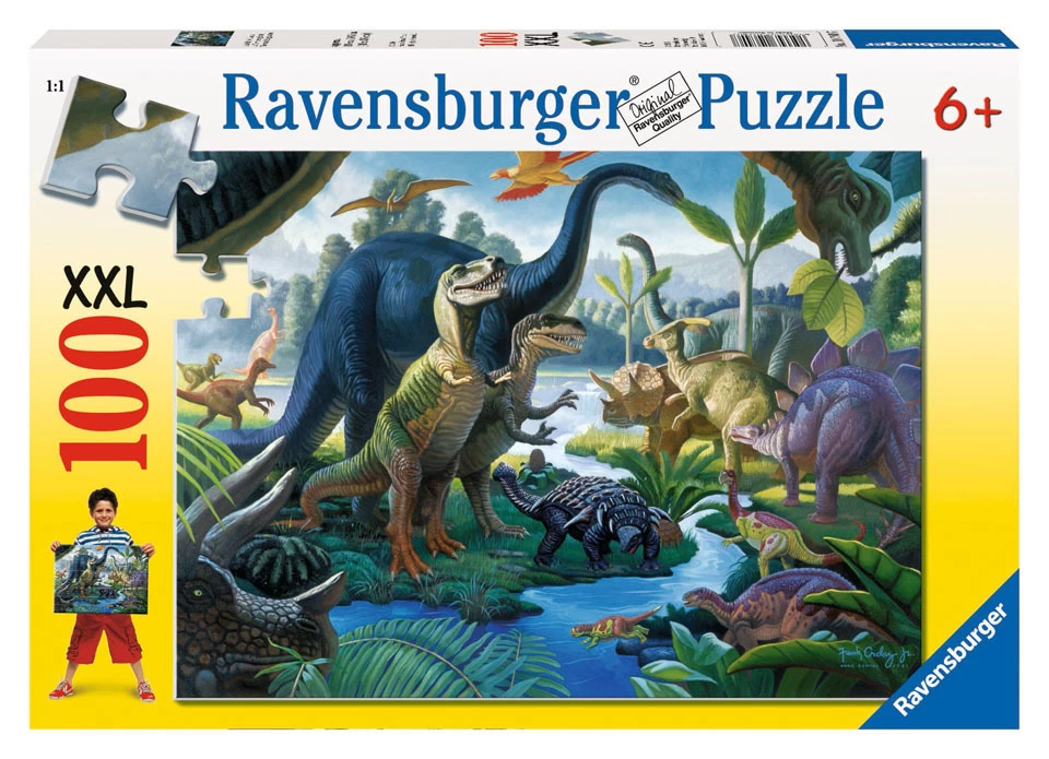 Every ones favourite, our collection of Ravensburger dinosaur puzzles are always best sellers! This Ravensburger Land of the Giants 100 piece prehistoric dinosaur jigsaw puzzle has realistic scenes from ancient times including volcanos and even Pterosaurs, the famous flying dinosaur. Look for more 100pc Puzzles from our Dinosaurs Collection.