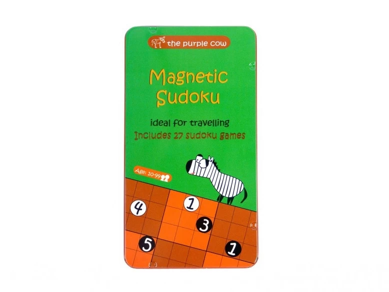 The Purple Cow Sudoku travel game is a compact and entertaining game perfect for travelling or when out and about. This Sudoku classic game, designed in a slim tin game & storage case is a fun and affordable travel game for all ages. Suitable for ages 6+ years!